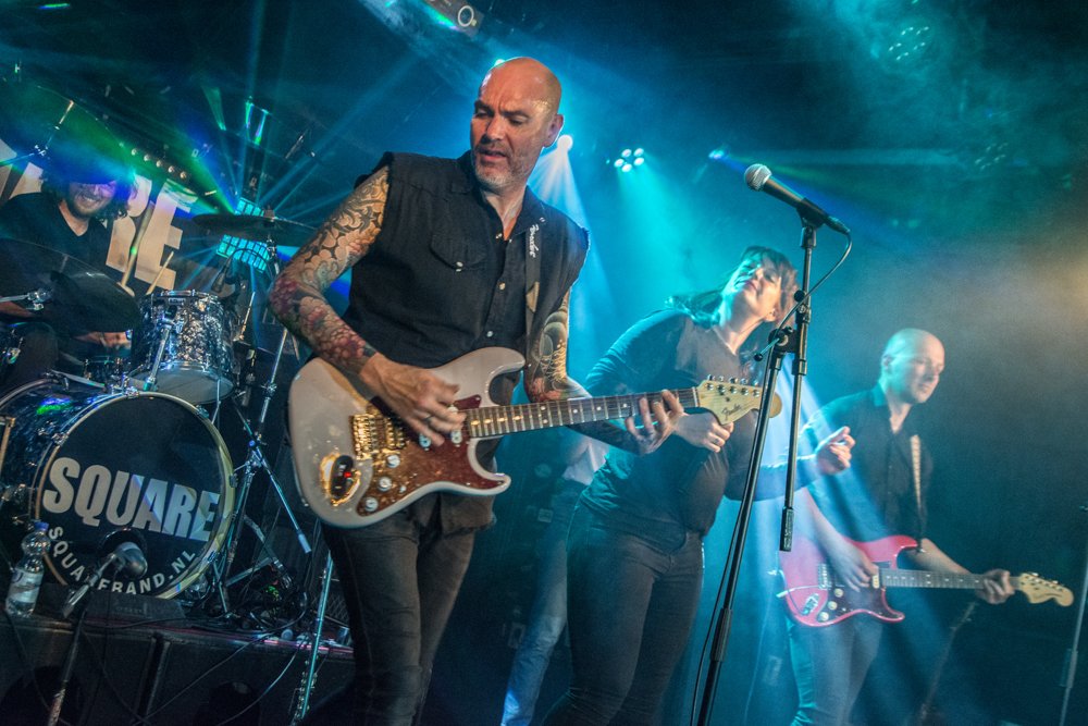 ‘Square’ is een rockcoverband uit Zuid-Holland die de uitdaging aangaat het ‘Naked truth’ album ten gehore te brengen.De vijfmans/vrouw formatie, niet aan stijlgebonden, van Rock naar pop-rock naar luisterliedjes en vanavond in WPC Nederland 3 zorgen zij er voor dat niemand op zijn plaats blijft zitten. Rond 21.30 uur betreed het enigszins nerveuze vijftal het podium de aftrap van ‘The naked truth’.In de eerste sessie staan de akoestische muziekinstrumenten centraal.’Vanilla Queen’, ‘Mad Love’ komen voorbij ‘I Can’t Sleep Without You’ is de afsluiter van de accoustische’ sessie. Een prima opwarmer voor de start van de avond. Na het nuttigen van enkele versnaperingen, gaan de stekkers in de instrumenten voor de tweede sessie en wordt de uitverkochte zaal van WPC 3 op zijn kop gezet. De 300 aanwezigen gaan los op ‘Radar love’, ‘Twilight Zone’, ‘Long blond animal’.
