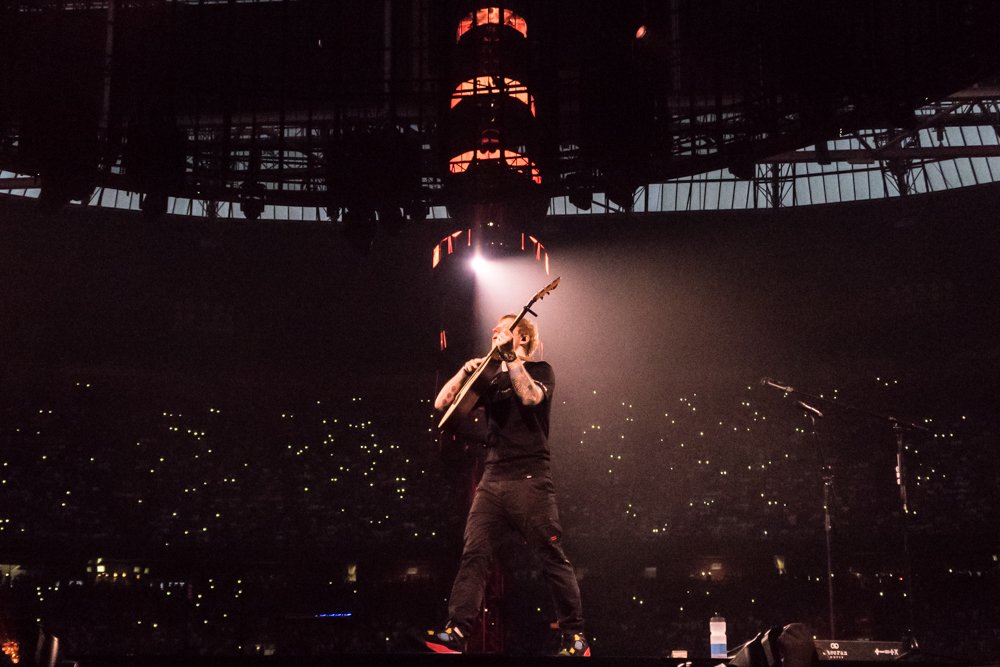Er zijn maar weinig artiesten die de afgelopen tijd zo productief zijn als meneer Sheeran. Zijn wereld tours worden alom geprezen, tel daarbij zijn vijf hit albums en je hebt een waanzinnige staat van dienst. Zelfs als niet diehard fan moet je erkennen dat van de 23 nummers die vanavond op de setlist staan, er 20 herkend als hit, dan mag je wel onder de indruk wezen.