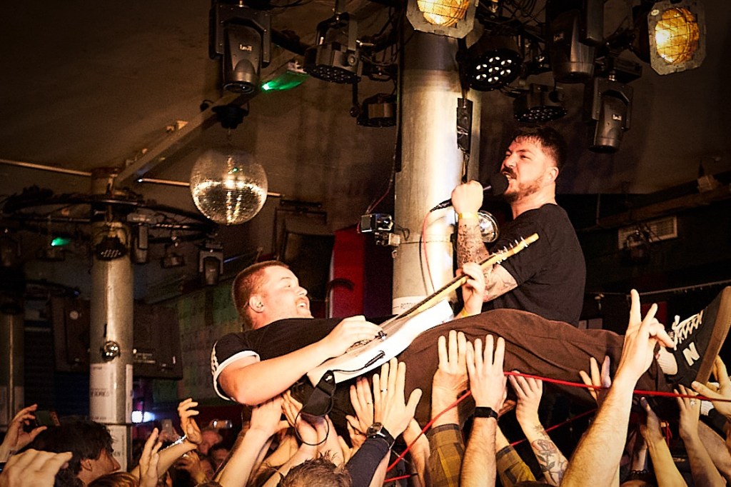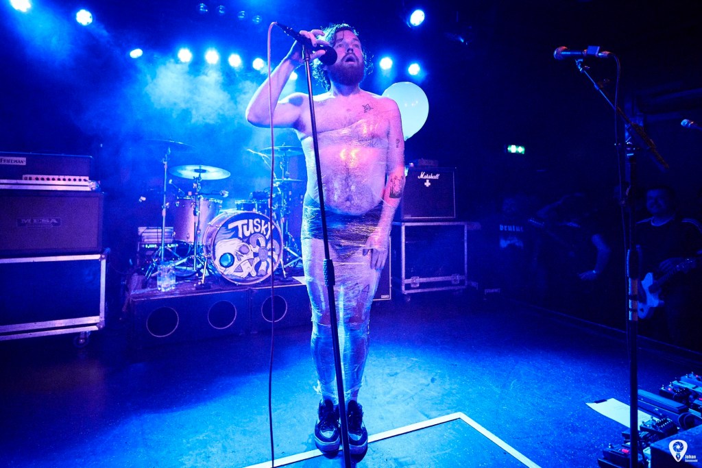 Tusky, met een verleden uit het John Coffey tijdperk, kwam Rotown van binnenuit slopen! Hun laatste passage in de Rotterdamse zaal dateerde uit 2022, nog met een deels andere bezetting. Uit het niets kwam een in plasticfolie gewikkelde worm (??) de band aankondigen. Gekend om hun liveoptredens stelden deze niet teleur. Straight up punk met metalinvloeden werd de zaal in gegooid! Een show van Tusky is niets zonder het publiek en die kwamen lieten zich massaal gelden: crowdsurfen, stagediven, luidkeels de nummers meezingen…stilstaan was alvast geen optie. Zanger Vladimir Stevic deed zijn duit in het zakje: podium af podium op, klimmend in de palen van Rotown waar terloops even een gitarist voorbij kwam zwemmen! Op geen enkel moment werd gas teruggenomen.