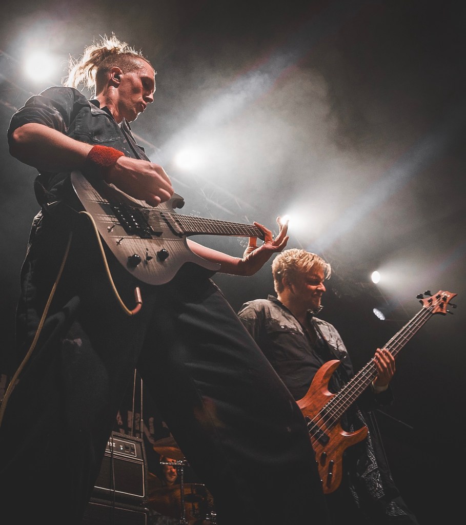 De riffs zijn solide en krachtig, met een balans tussen agressie en melodie. Deze krachtige gitaarriffs zijn een handelsmerk van de band en bieden een solide basis voor hun sound. De combinatie van ritmisch strakke en melodieus meeslepende stukken geeft het geluid zowel een ruige rand als een emotionele diepgang.