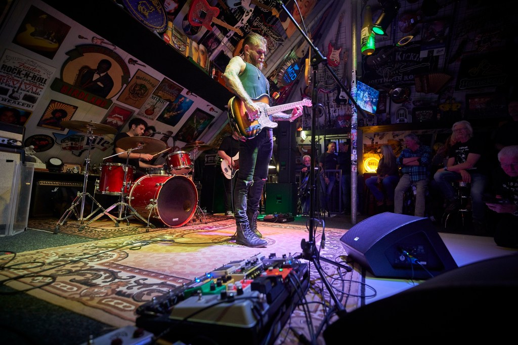 Poole’s gitaarstijl is diep geworteld in de blues, maar hij schuwt niet om elementen uit andere genres te integreren. Zo zijn er vaak funkachtige ritmes en rockachtige riffs te horen in zijn nummers. Zijn techniek op de gitaar wordt gekenmerkt door een combinatie van vingervlugge solo’s en subtiele, expressieve bends die zijn spel een soulvolle touch geven. naast Poole op gitaar zagen we Steve Amadeo op de bas en Ollie Dixon op drums.