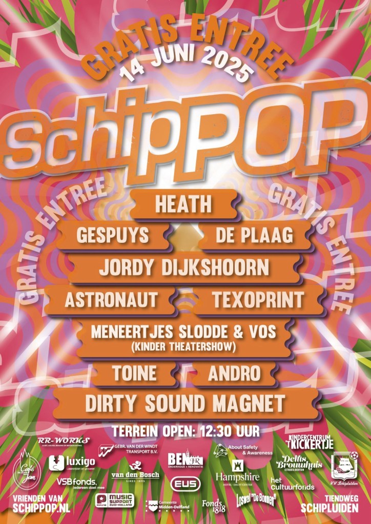 Op 14 juni 2025 vindt de 24e editie plaats op evenemententerrein Tiendweg in Schipluiden. Vanaf 13:00 uur barst het feest los en is er ook voor de kinderen genoeg te doen. Wij zijn momenteel hard bezig om weer een prachtige line-up neer te zetten. Er is ieder geval genoeg te beleven dus je bent ieder geval de hele middag en avond onder de pannen!