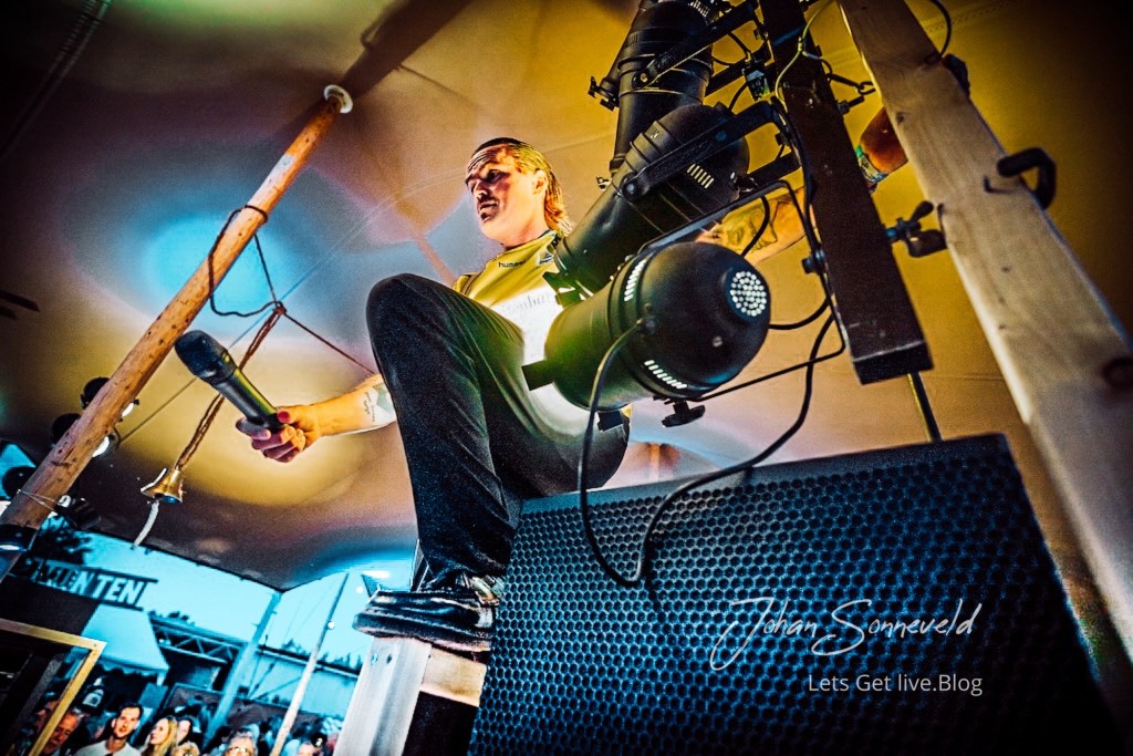 Zo divers als Schippop is, was schakelen het magische woord van de dag. Van de seventies-bluesrock schakelden we moeiteloos over naar de rauwe Nederrap van Jordy Dijkshoorn , voormalig frontman van De Likt. Hij veranderde de Boxring in een stagedivende arena, met vuige, snijdende teksten die het publiek een spiegel voorhield. Wat Eddie Vedder op Pinkpop presenteerde deed,Jordy in het klein nog eens over: vanuit de nok van het podium dook hij het publiek in.