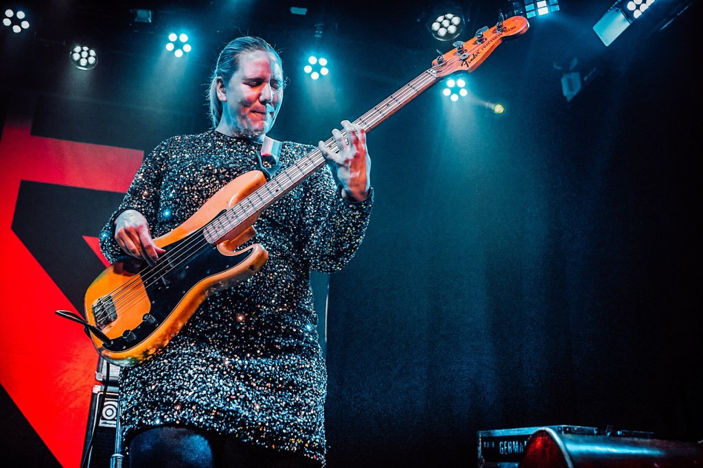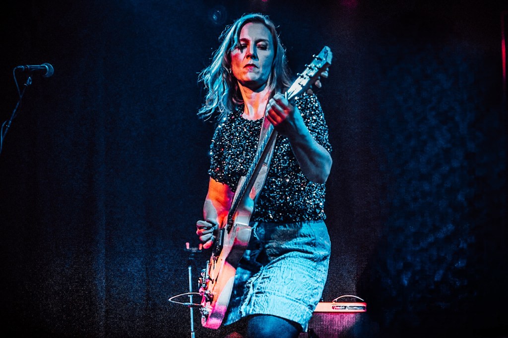 Hedvig’s gitaarspel was ronduit meeslepend. Ze schakelde moeiteloos tussen fluisterzachte passages – vol zwevende delayklanken – en explosieve uitbarstingen waarin fuzz en wah-pedalen de toon bepaalden. Die dynamische contrasten vormden de ruggengraat van het optreden: alles ademde spanning en lef.
